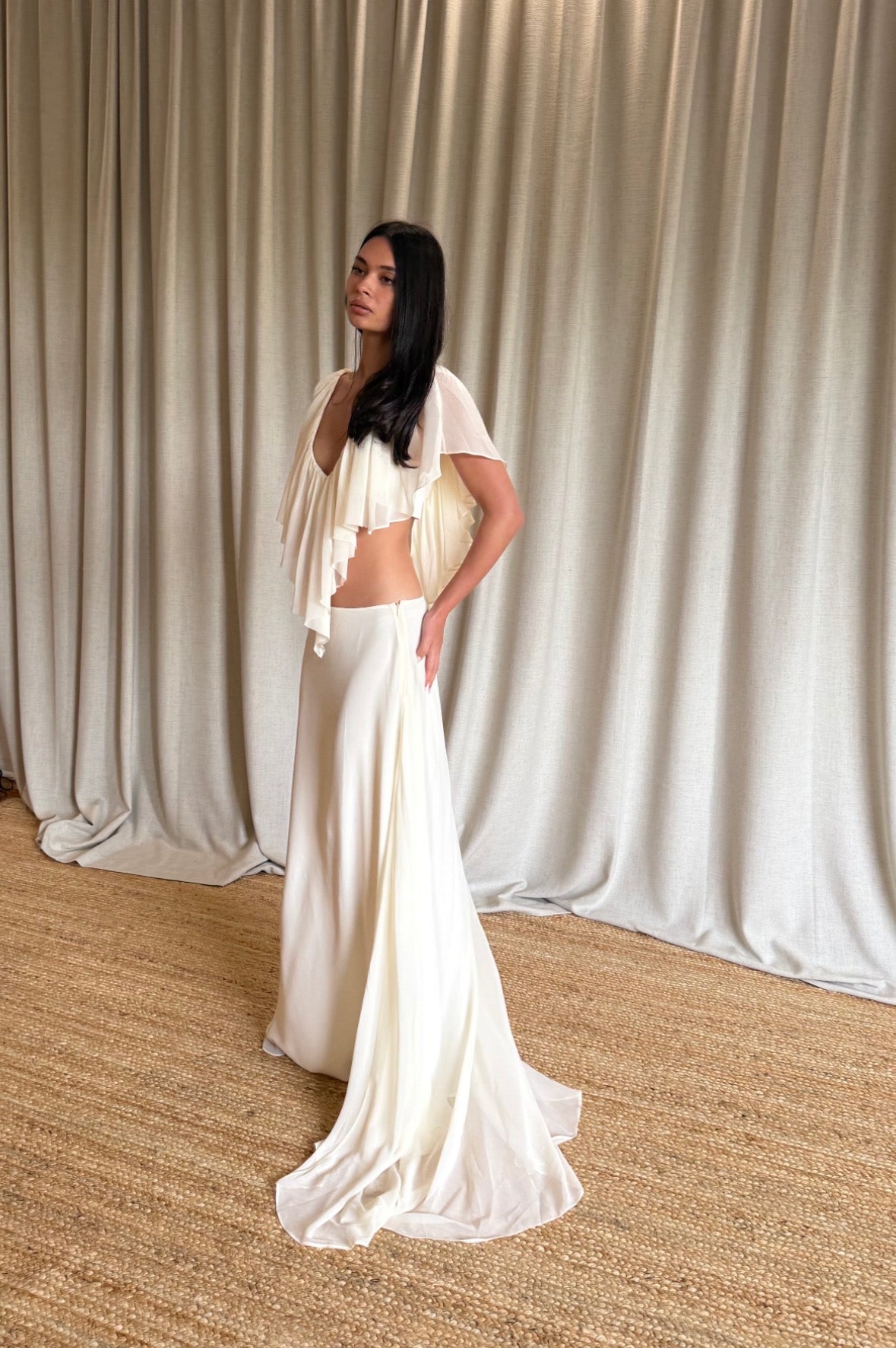 A low rise maxi skirt with a smooth, elongated fit and a soft fluted hem for natural movement. Designed in a lightweight drape that falls effortlessly over the body. Finished with an invisible side zipper for a clean, minimal look.