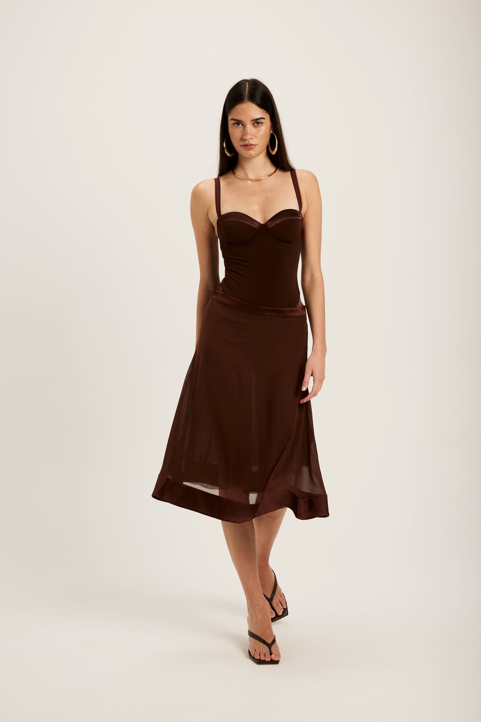 Meet the Vittoria Bodysuit in Chocolate.
