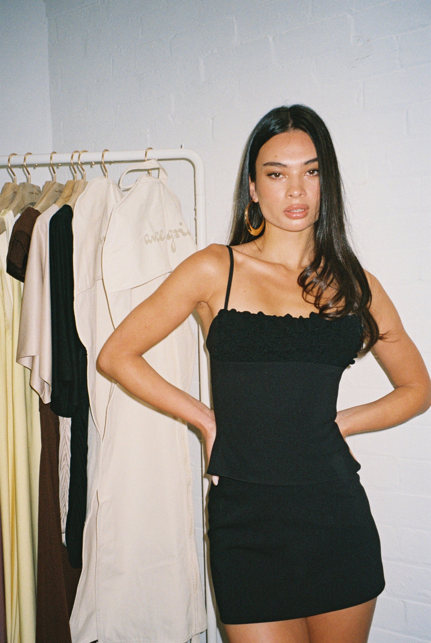 We loved the 100% silk-trimming idea and carried it into this silhouette. The frill and flowing skirt felt right. Sheer, light, and a little sexy. Side seams were added to create extra movement and keep the whole piece feeling airy and alive.