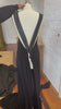 This design was inspired by the contrast of tuxedo satin, with silk trim added for a subtle 90’s touch. Once the drape began, it was clear the back needed to echo the front to keep the symmetry and balance of the silhouette.