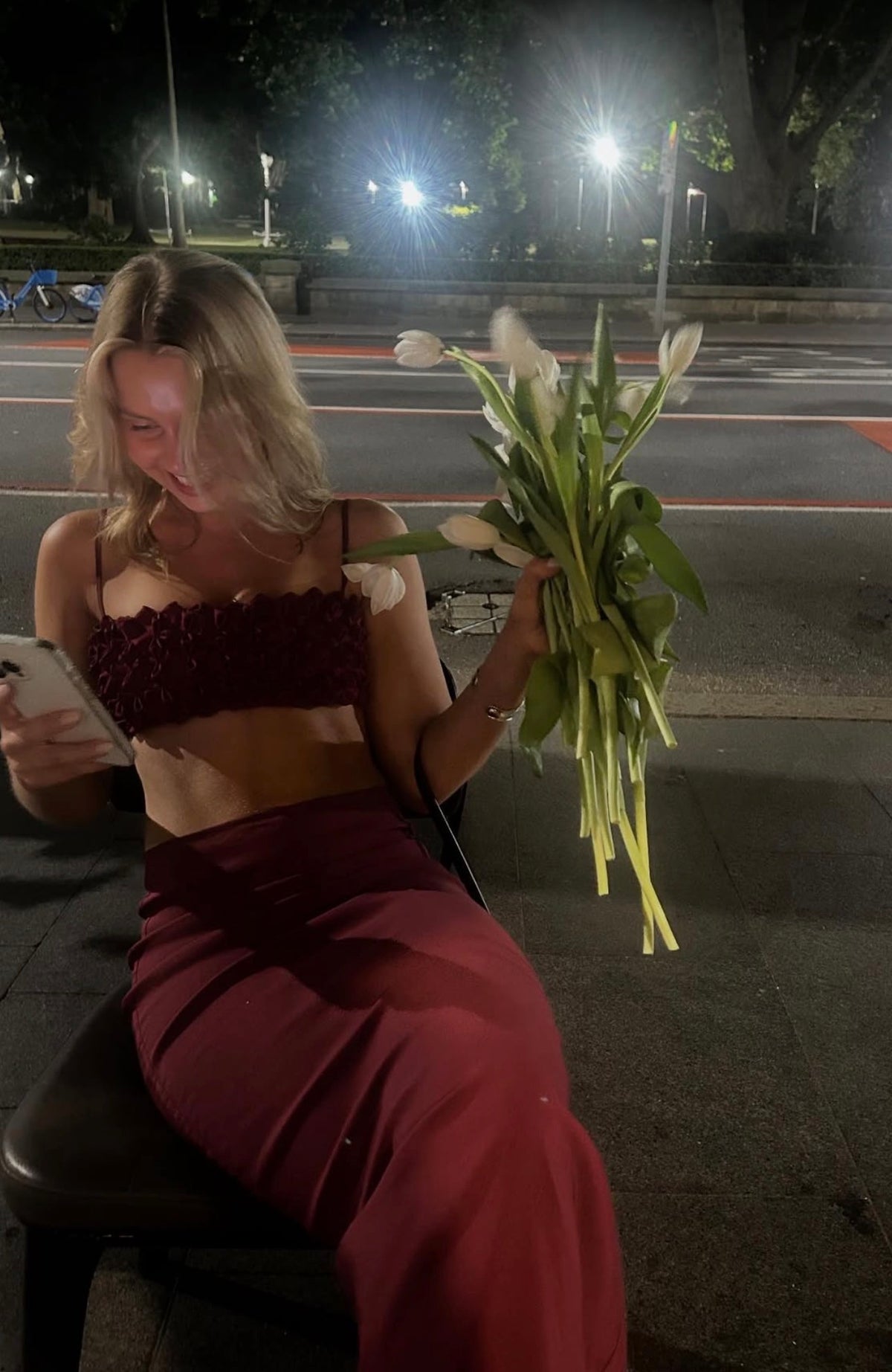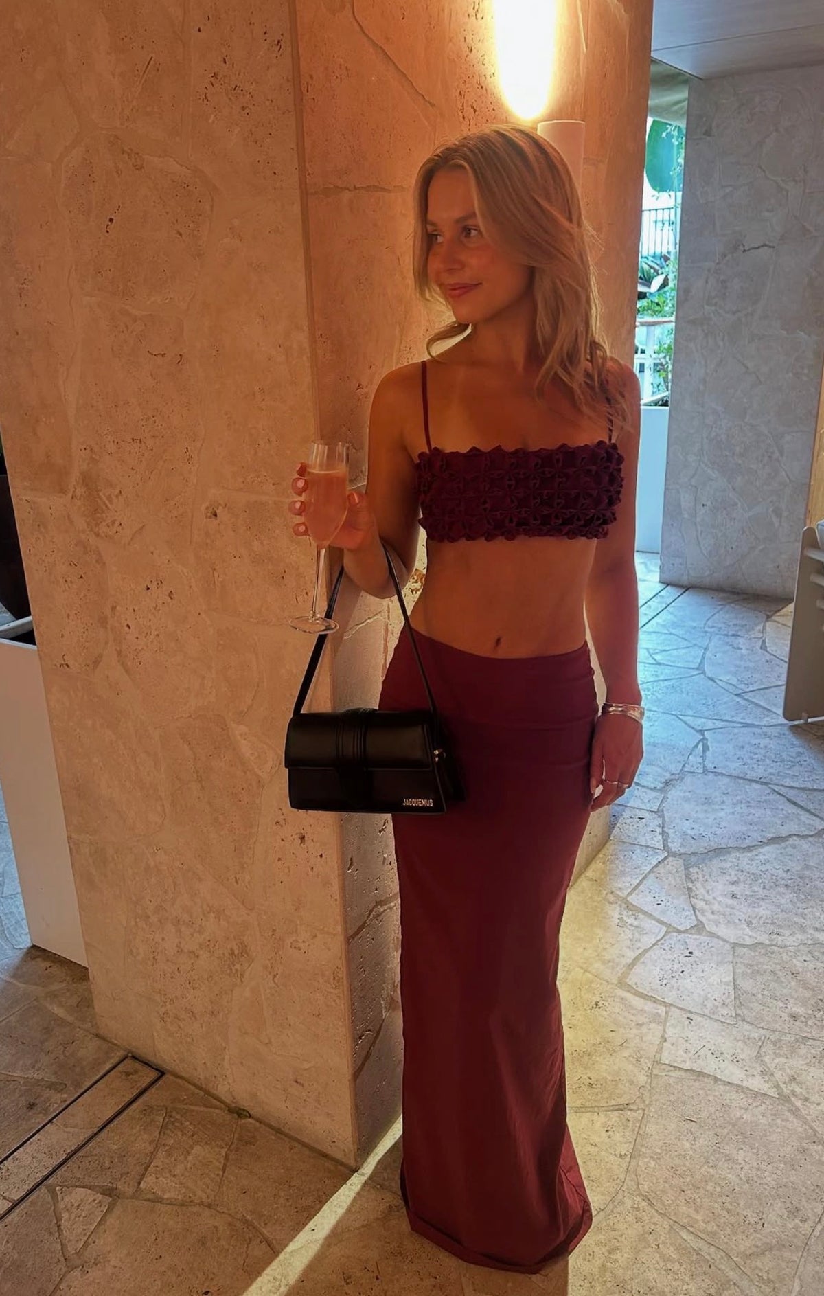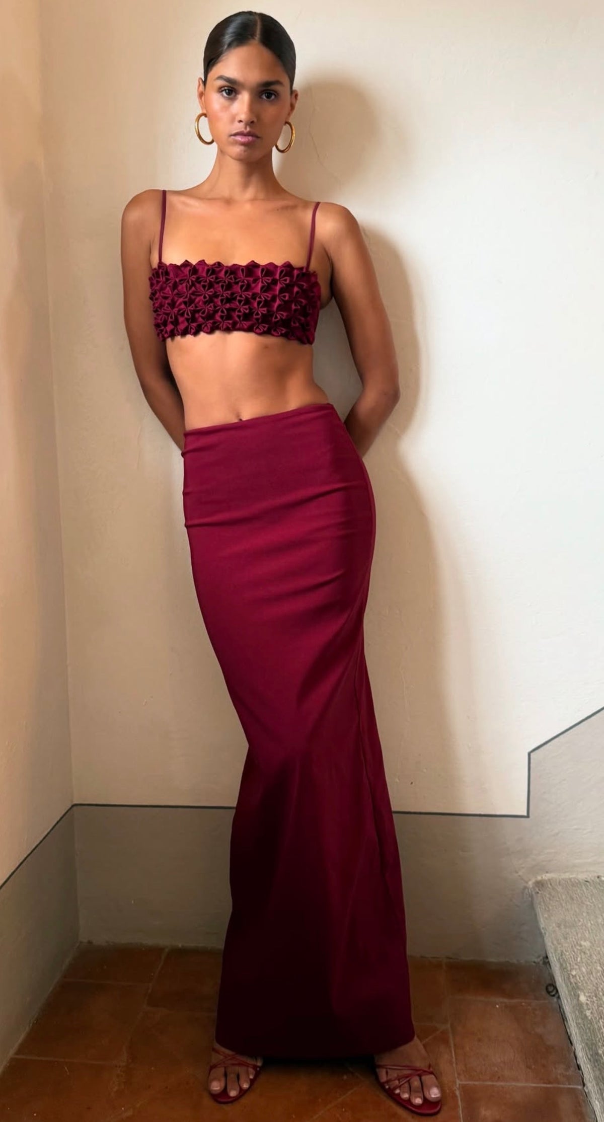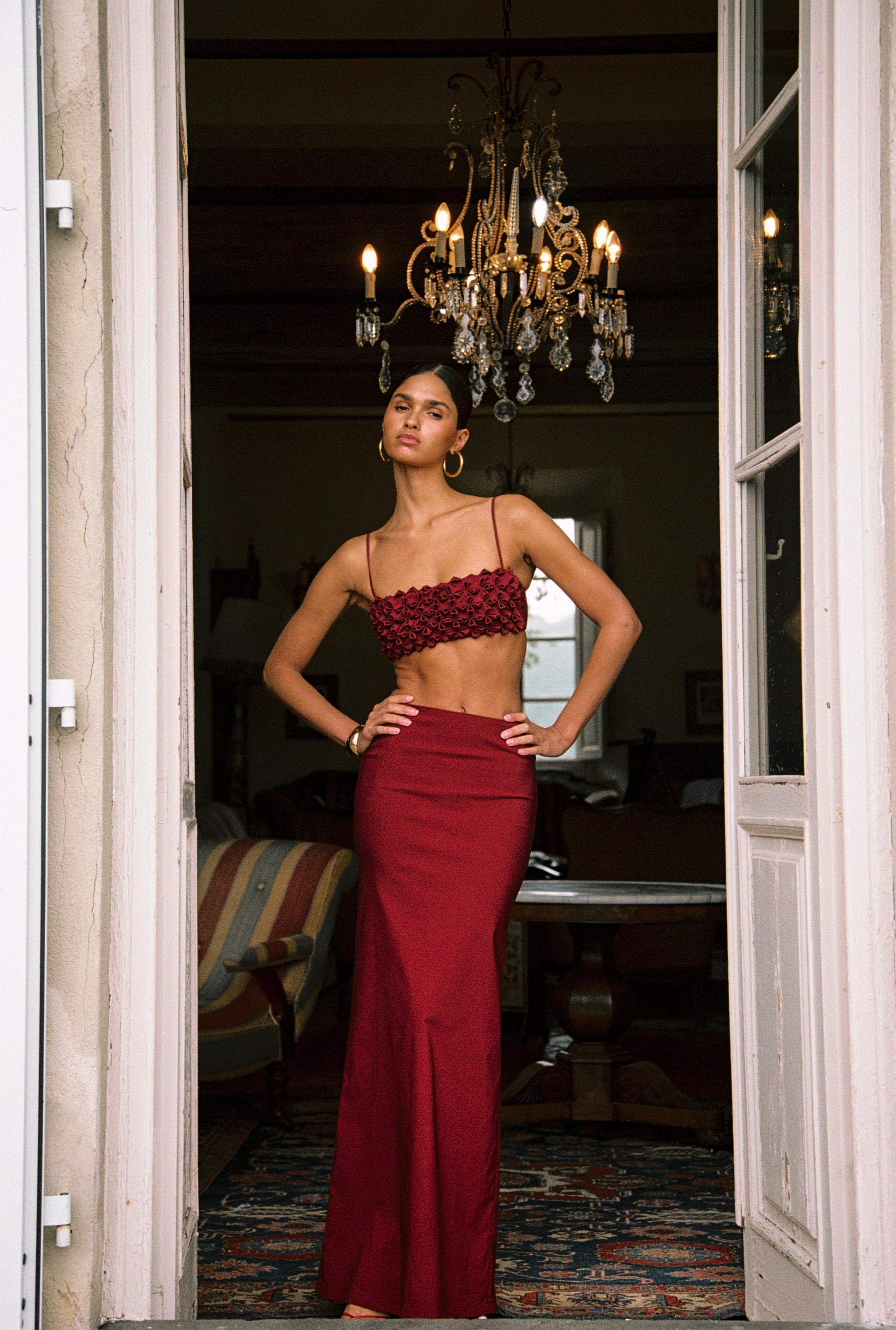 This delicate bralette features intricate floral smocking across the bust, creating a textured, feminine design. The thin straps add a soft, minimal touch, while the bra clasp ensures a secure, adjustable fit.